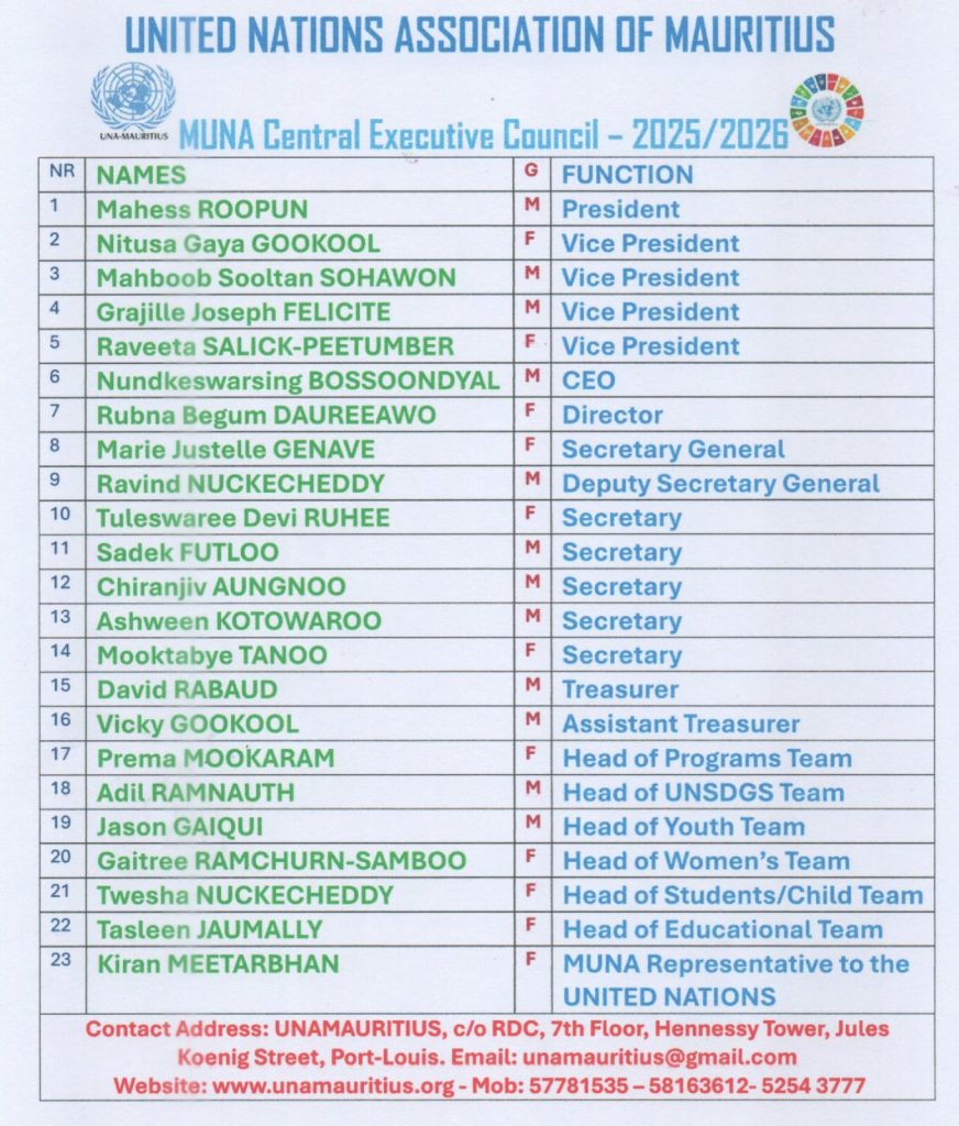UNAMAURITIUS OFFICE BEARERS 2025/2026